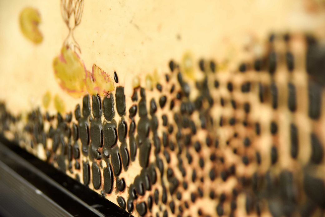 Encaustic painting, also known as hot wax painting, involves using molten beeswax and added color pigments. The liquid wax is then applied to a substrate, such as a wood panel and fused or burned in through the use of a heat source, such as a heat gun or propane torch. Layers are applied, one on top of the other, with each layer being separately fused in. This technique results in a depth and luminous translucency that is unique to encaustic art.